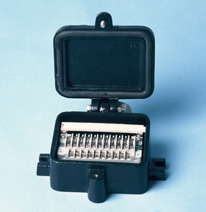 Signalna omarica z blažilniki tresljajev, zemeljski kabelski razdelilec in kabelski končnik za signalno glavo